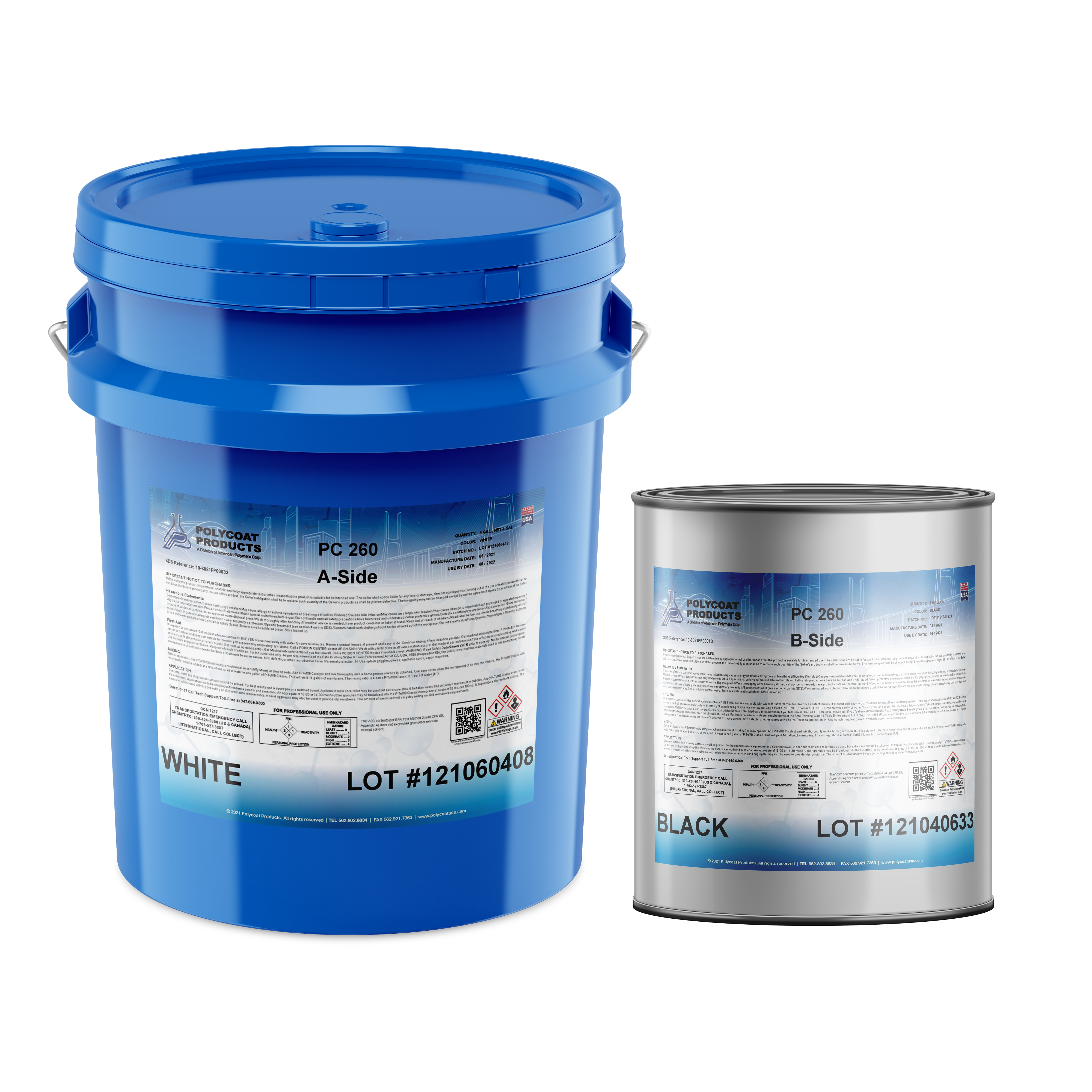 PC-260 is a two-component, fast-setting, fast-curing, solvent-free, flexible, high-performance, and high-solids polyurethane elastomeric coating that can be applied to suitably prepared interior or exterior concrete, plywood and metal surfaces. Due to its fast gel time, PC-260 is suitable for applications in temperatures as low as 200F (-60C).