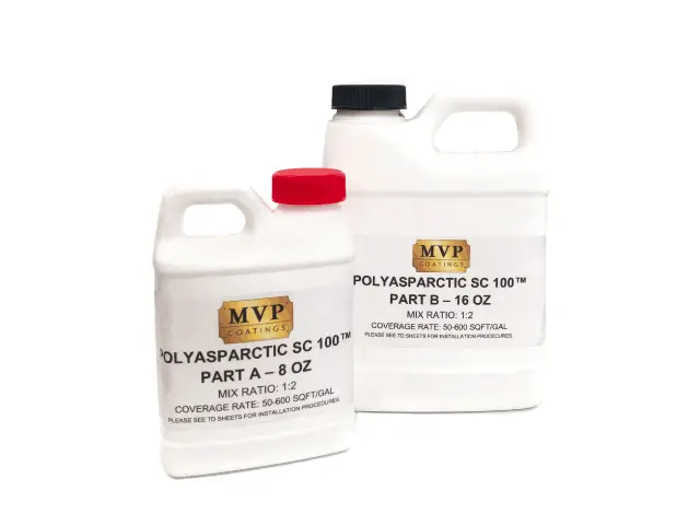 Polyasparctic SC 100™ is a two-component 100% solids aliphatic polyasparctic/polyureau top coat with excellent UV and color retention. Designed for commercial, industrial and manufacturing atmospheres.